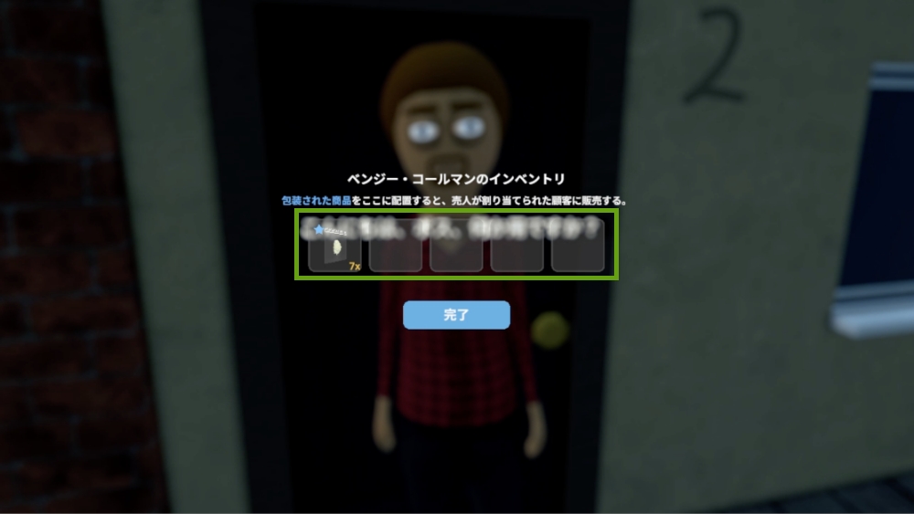 条件に同意して契約が成立すると、ベンジーは「商品を持ってきて、顧客を何人か任せてくれ」と告げます。彼は最大8人までの顧客を担当できます。