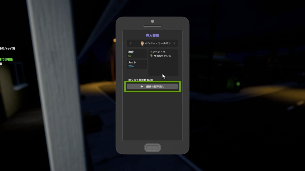 割り当ては自由ですが、基本的には予算が高い顧客をプレイヤーが担当し、低めの顧客を売人に任せるのがおすすめです。また、注文数が多い顧客はプレイヤーが担当した方が効率良く稼げますが、管理が大変な場合は注文数の少ない顧客を任せるのも一つの戦略です。