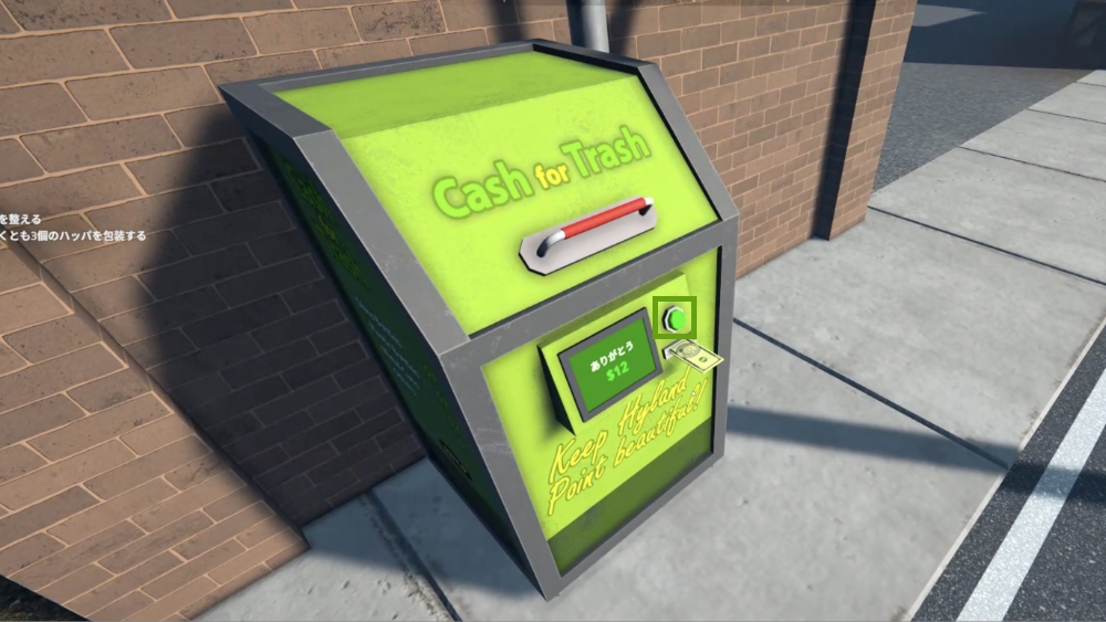 街の緑のゴミ箱(Cash for Trash)に捨てることで、ゴミをお金に換えることができます。