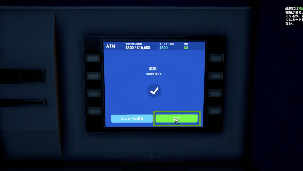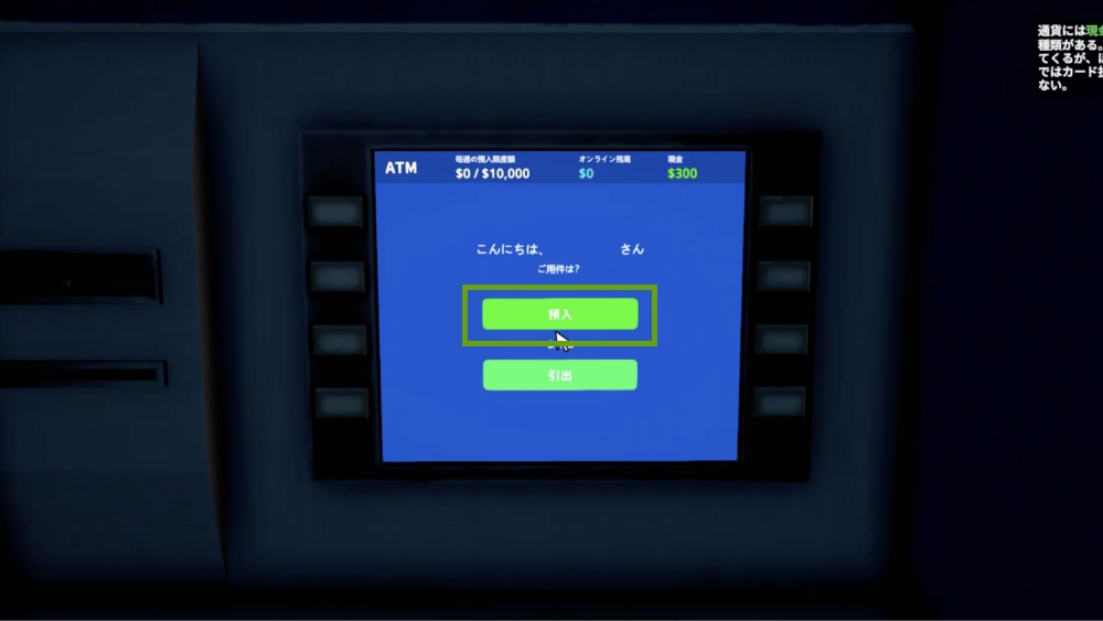 ATMを Eキー で選択し、「預入」を選択します。