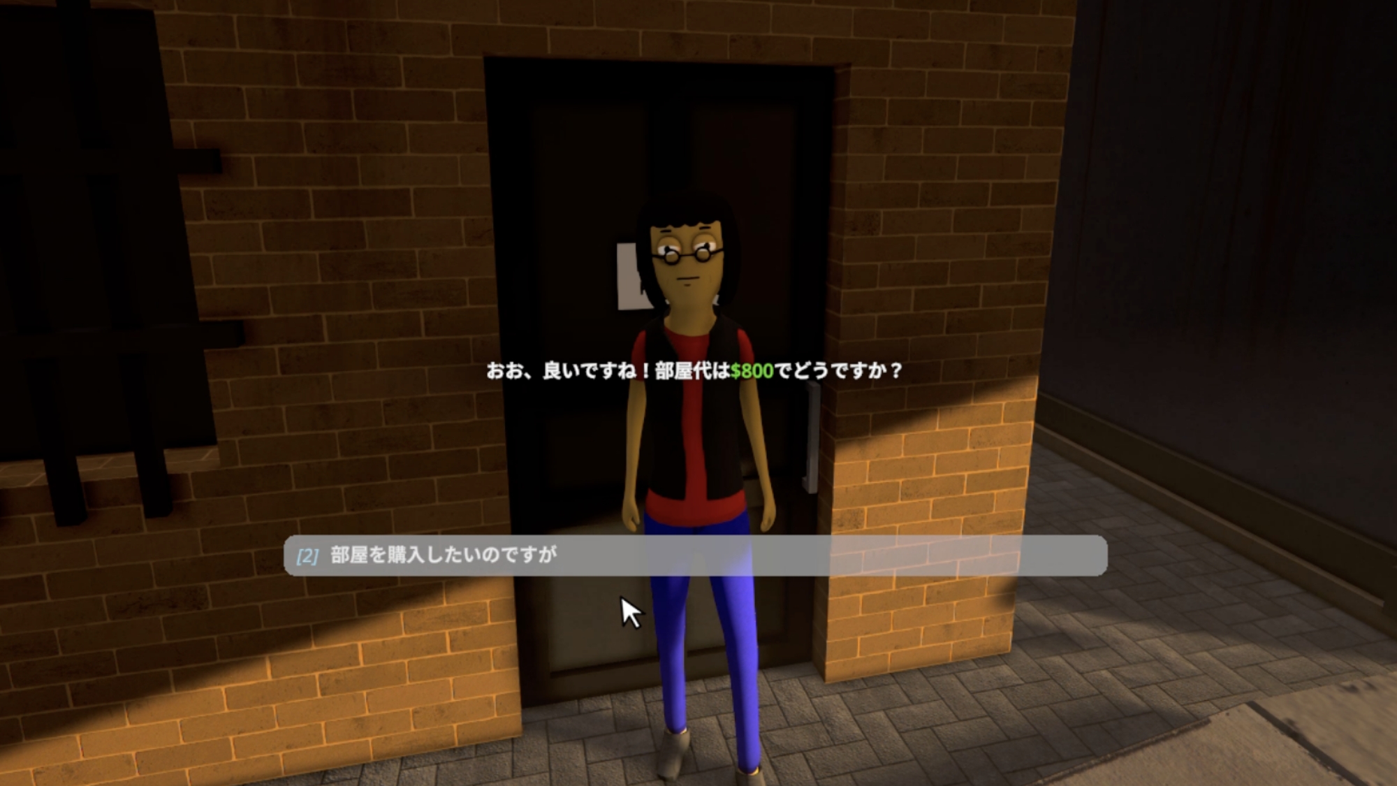 プレイヤーが部屋の購入を申し出ると、店主は$800で売ることを提案します。支払い後、レストラン裏の階段を上がった場所に部屋があると案内されます。
